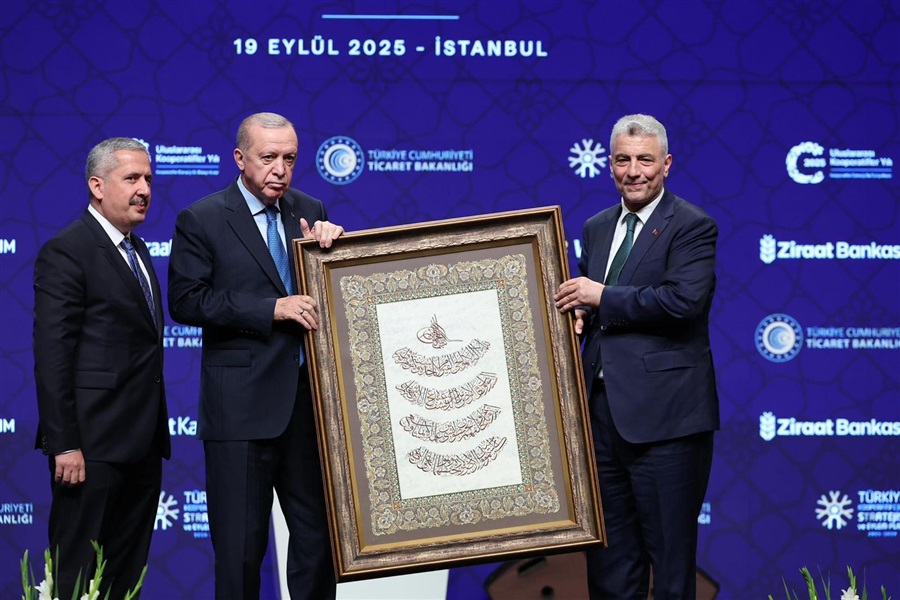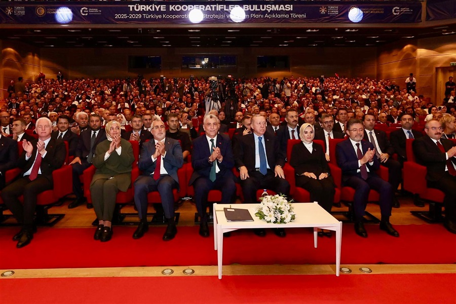 Cumhurbaşkanımız Sayın Recep Tayyip ERDOĞAN, törendeki hitaplarında; "Hükümet olarak, bu anlamlı yılı vesile kılarak kooperatifçilik kültürünü daha da yaygınlaştırmaya çalışıyoruz. 2012 yılında açıkladığımız eylem ve strateji planımızın önceliği, mevzuatla ilgili sıkıntıların ve dağınıklığın giderilmesiydi. Bu doğrultuda ciddi yol aldık. Ama halen önümüzde kat etmemiz gereken mesafe var. 2025-2029 yıllarını kapsayan yeni planla inşallah bunu başaracağız. 2025-2029 Kooperatifçilik Stratejisi ve Eylem Planı’nın, Türkiye’nin kooperatifçilik vizyonunu bir adım daha ileriye götüreceğine inanıyorum. Strateji belgesinin temel gayesi; kooperatifçiliğe daha elverişli bir ortam oluşturma, sektöre olan güveni artırma, kooperatifleri daha verimli, etkin, sürdürülebilir, rekabet edebilir ve yenilikçi kılmaktır. Plan, 5 politika ekseninde 2 amaç, 6 hedef ve 23 faaliyet ile bunlara ilişkin performans göstergelerinden oluşuyor. Strateji belgesinde; dijitalleşmeden yeni kooperatif türlerine, mevzuatın güncel gelişmelere uyarlanmasından kooperatiflerin kurumsal ve finansal kapasitelerinin artırılmasına kadar pek çok hedefe yer verildi. Türk kooperatifçiliğinin gelecek 5 yılda adeta başucu kılavuzu olacağına inandığım planın hazırlanmasında emeği geçenlere teşekkür ediyorum. Kooperatif kuruluşlarını teşvik etmek, mevcut kooperatiflerimizin ise ticari kapasitelerini artırmak üzere çalışmaya devam ediyoruz. Bu minvalde, 5 sene önce, 2020 yılında “Kooperatiflerin Desteklenmesi Programı” KOOP-DES’i uygulamaya geçirdik. KOOP-DES’le ülkemiz genelinde 772 kooperatifin 826 projesine toplam 110,5 milyon liralık hibe desteği verdik. Geçtiğimiz yıl başında kooperatiflerin faydalanabileceği destek kalemlerinde iki kat artışa gitmiştik. Bu yıl destek rakamını iki buçuk katına çıkardık. Kooperatiflerimize sunulan; makine-ekipman-demirbaş alım desteği 400 bin liradan 1 milyon liraya, sergi ve fuar katılım desteğini 60 bin liradan 150 bin liraya, nitelikli personel istihdamı desteği 1 personel için yıllık 204 bin liradan 266 bin 400 liraya, 2 personel için 408 bin liradan 532 bin 800 liraya yükselttik. Kooperatiflerimizin merakla beklediği 2025 yılı için başvuru sonuçlarını 22 Eylül’de inşallah açıklıyoruz. Şimdiden hayırlı ve uğurlu olsun, diyorum. Kooperatiflerimizden gelen yoğun talep üzerine de önümüzdeki sene inşallah desteğe ayırdığımız bütçeyi kayda değer ölçüde artıracağız. Bir diğer müjdemiz şudur: Destek programından bir defa faydalanan kooperatiflerimizin 5 sene geçmeden tekrar başvuru yapamaması kuralını, 4 yıla indiriyoruz. Ayrıca Kredi Garanti Fonu bünyesinde, kooperatiflerimizin kullanımına münhasır yeni bir destek mekanizması oluşturuyoruz. TESKOMB tarafından yatırılacak 100 milyon liralık fonla kooperatiflerimize toplam 3 milyar liralık kredi imkânı sunacağız. İhracat desteklerinden kooperatiflerimizin yararlanabilmesi için de ayrı bir çalışma yürütülüyor. Yöresel ürünlerin perakende sektöründeki payının artırılması bir başka önceliğimizdir. Büyük mağaza ve zincir mağazaların satış alanlarında yöresel ürünlere ayrılan en az yüzde 1’lik raf oranını, kooperatiflerimiz tarafından üretilen ürünlere ayırıyor ve bu oranı yüzde 2’ye çıkartıyoruz. Yine kadın kooperatiflerinin ürünlerindeki barkod ücretleri ile Gıda Kontrol Laboratuvarlarınca yapılan gıda analizi için ödedikleri ücretlerde indirime gidiyoruz. Kadın kooperatiflerimiz ise pek çok kadına, çocuğa, engelliye ulaşarak, bu grupların topluma ve ekonomiye daha fazla katılımına destek oluyor. Kadın kooperatiflerimizin e-ticaret pazar yerlerine ödedikleri komisyon oranlarının düşürülmesi için Ticaret Bakanlığımız ile e-ticaret firmaları arasında iş birliği protokolü yapılacak. Engelli kardeşlerimiz ile gençlerimizi de tabii ki unutmadık. Yüzde 80 engelli ve 18-24 yaş arası gençlerin emek ve ticari gayretlerinin ekonomiye kazandırılması gayesiyle sosyal kooperatifçilik kanun taslağı için çalışmalara başlıyoruz. Rabbim yar ve yardımcımız olsun, diyorum. Bu düşüncelerle 2025-2029 Kooperatifçilik Stratejisi ve Eylem Planı’nın ülkemiz ticaret hayatı için hayırlara vesile olmasını diliyorum. Vatanımızın dört bir ucunda büyük bir özveriyle çalışan tüm esnaflarımıza ve kooperatiflerimize teşekkür ediyorum. Kalbi ülkemiz için çarpan tüm kardeşlerimi, “Türkiye Yüzyılı” ve “Ticaretin Yüzyılı” hedeflerimiz doğrultusunda daha güçlü, daha müreffeh bir gelecek için dayanışma ruhunu büyütmeye davet ediyorum." ifadelerine yer verdi.